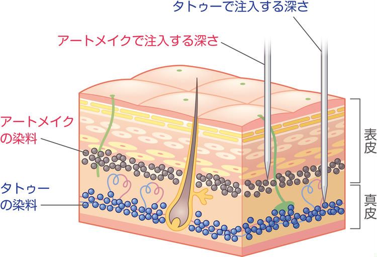 アートメイクはタトゥーよりも浅い層(表皮~真皮浅層)に色素を入れる技術で、持続期間は1~3年程度と短めです。しかし、アトピー肌の方にとって必ずしも安全とは言えません。